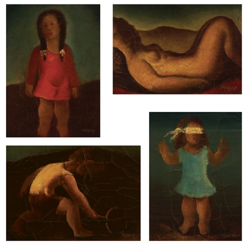 Composição com 4 obras * Cabra cega * brincadeira de criança * menina de vermelho * figura feminina - ost