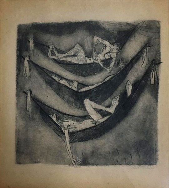 Homens na rede - água forte