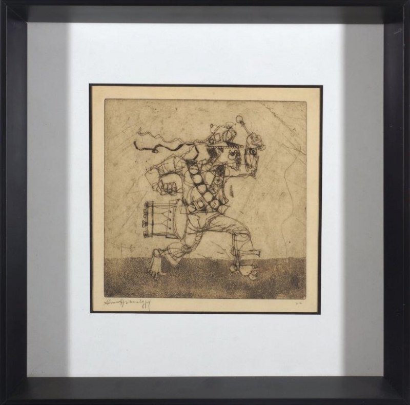 Músico - grav. em metal em alto relevo