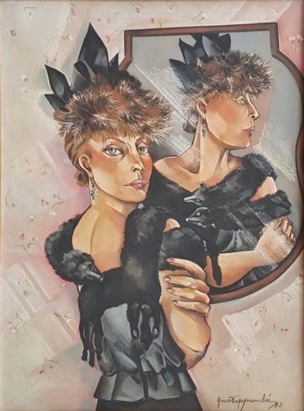 Dama de Ouro Preto refletindo no espelho - pastel sobre cartão