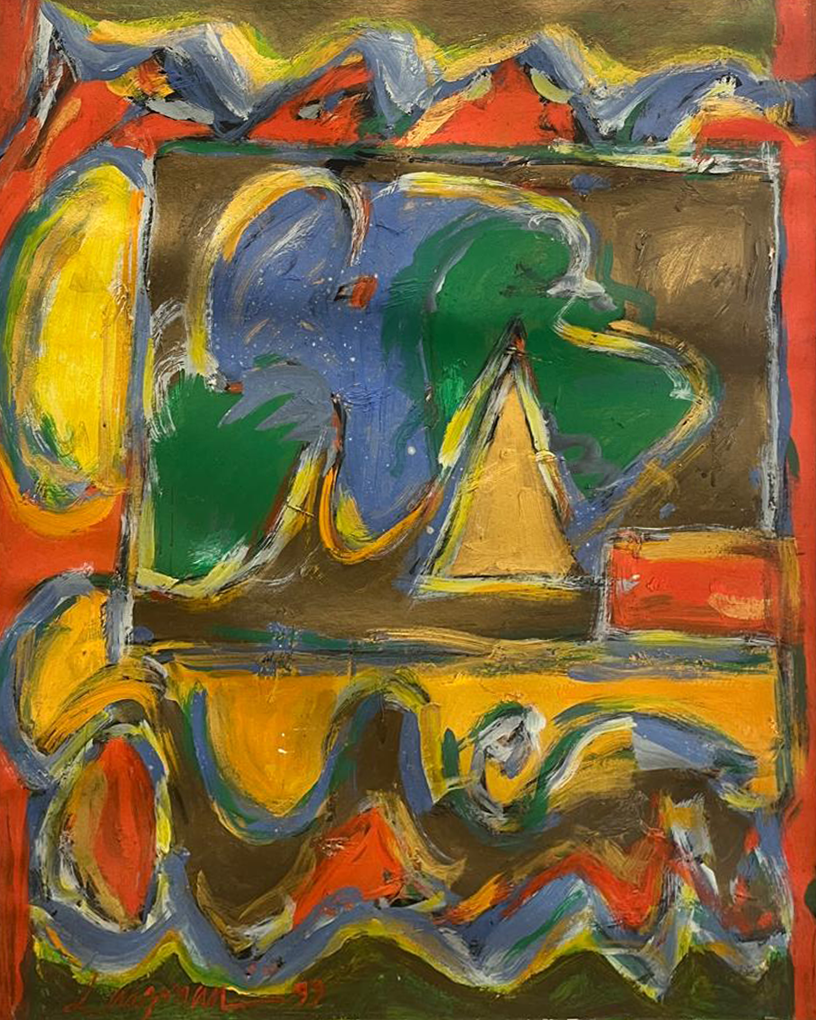 Apresenta no verso etiqueta do ateliê do artista. Etiqueta do centro experimental de estudos e pesquisas de artes plásticas, cênicas, arquitetura e design Artescultura.