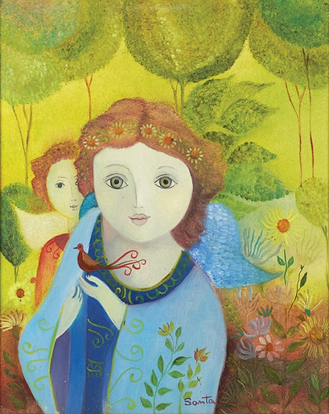Anjo de Maurino - Pastel sobre cartão sobre eucatex